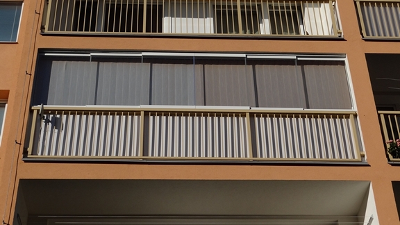Při úplném uzavření zasklení do sebe zapadnou zámky vertikálních profilů a zafixují křídla do správné polohy, čímž zabezpečí odolnost proti nárazům větru.
